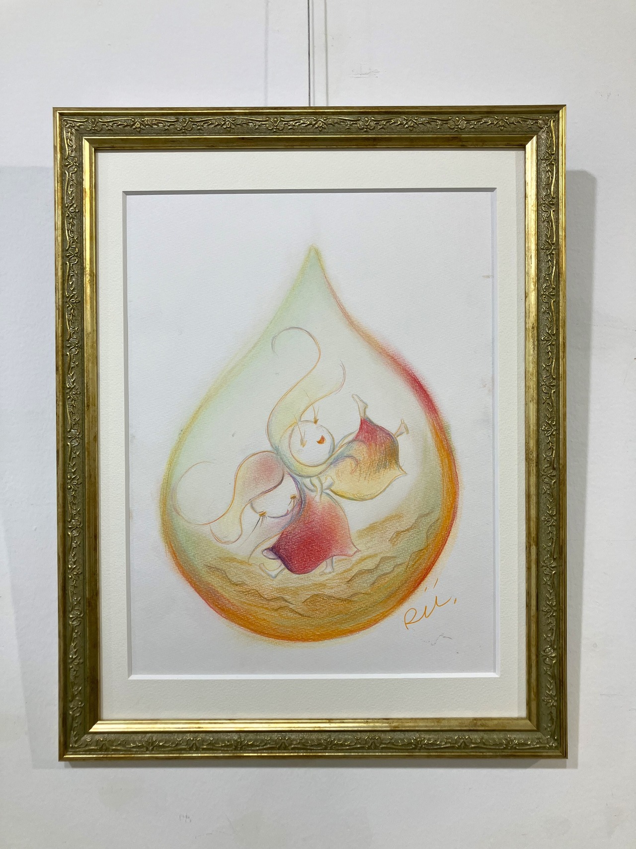サイズ W326×H416 色鉛筆、パステル画 額装込みの大きさで、額付きでお届けします。 “ 2人のたのしそうな笑い声が聞こえて来そうな作品です ”