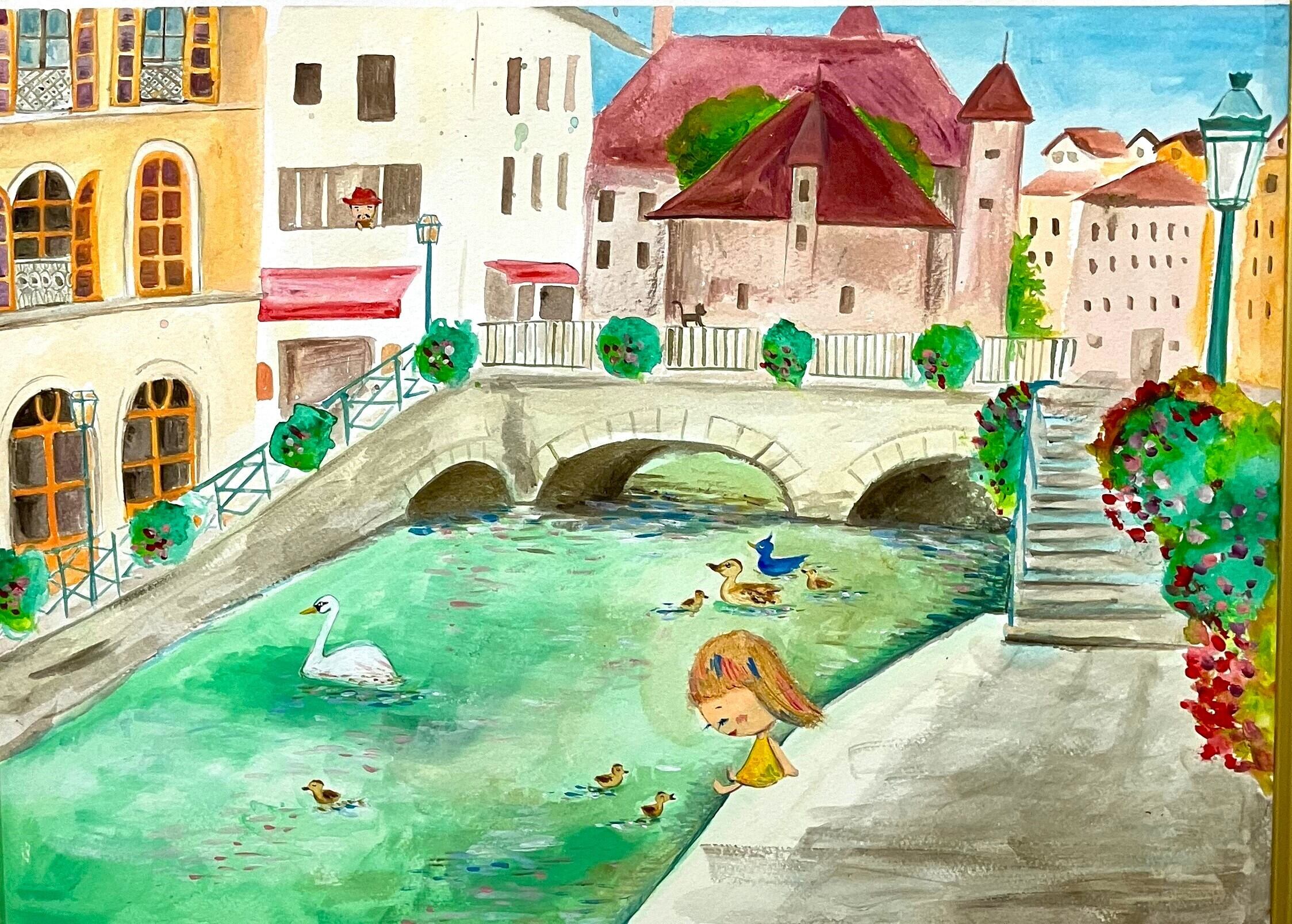 水辺に浮かぶ鳥達とおしゃべりする穏やかな1日の作品。